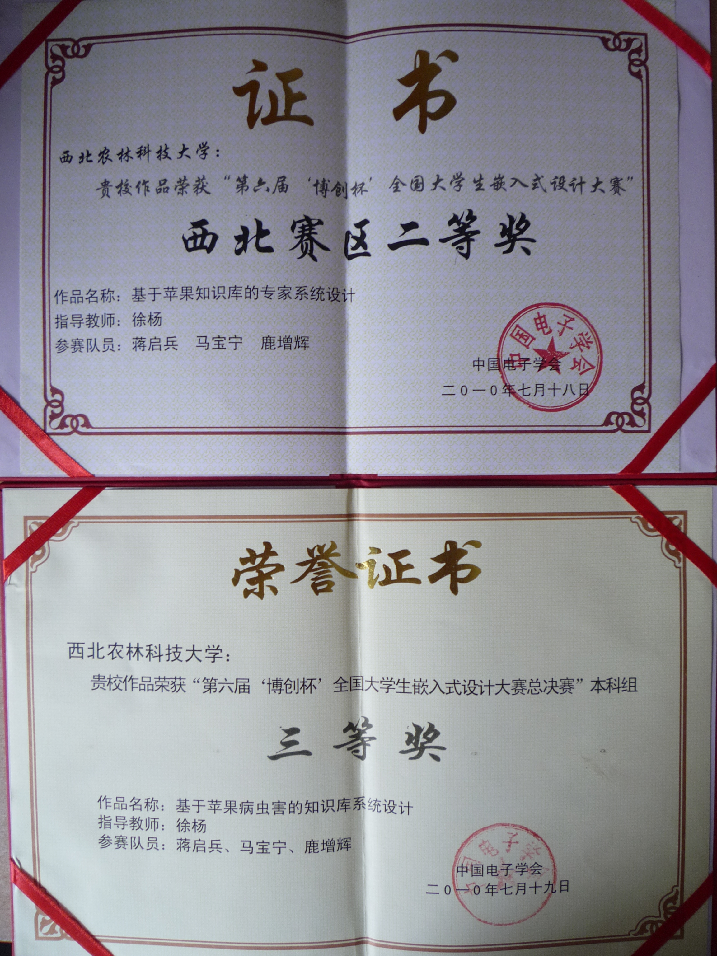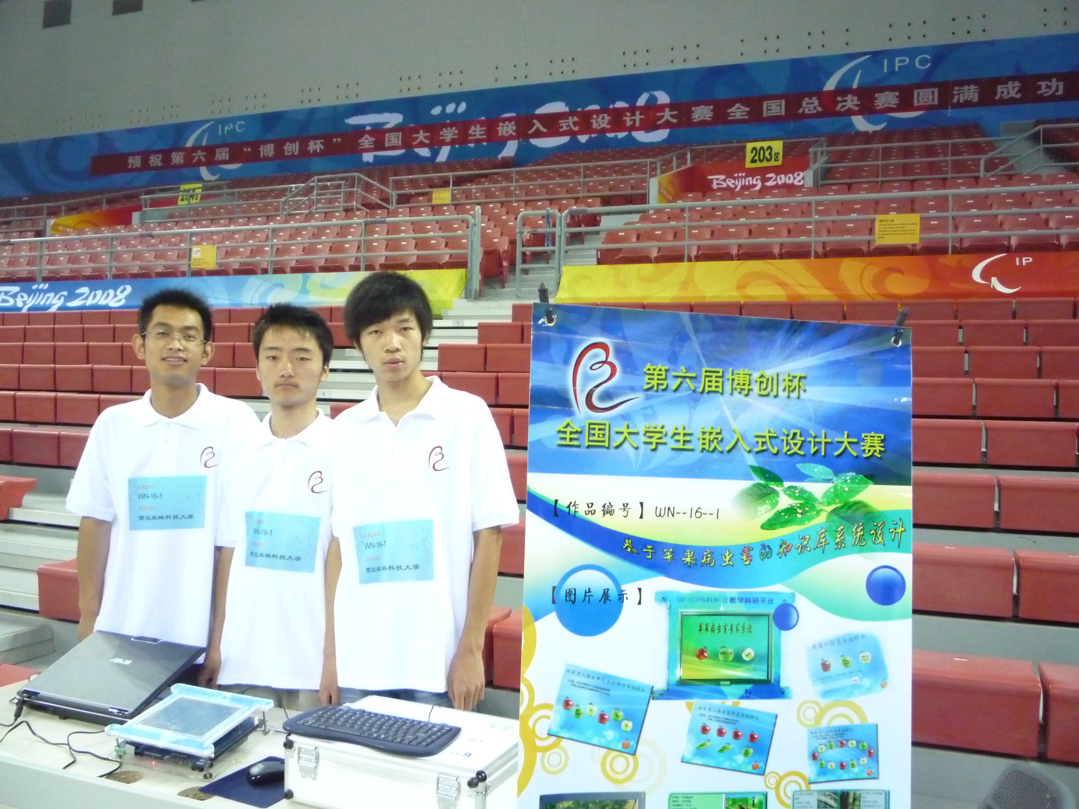 2010年7月19日,第六届“博创杯”全国大学生嵌入式设计大赛全国总决赛在中国农业大学奥运体育馆隆重举行。经过两天的激烈角逐,由我院徐杨副教授指导的参赛作品《基于苹果病虫害的知识库系统设计》喜获全国总决赛三等奖。