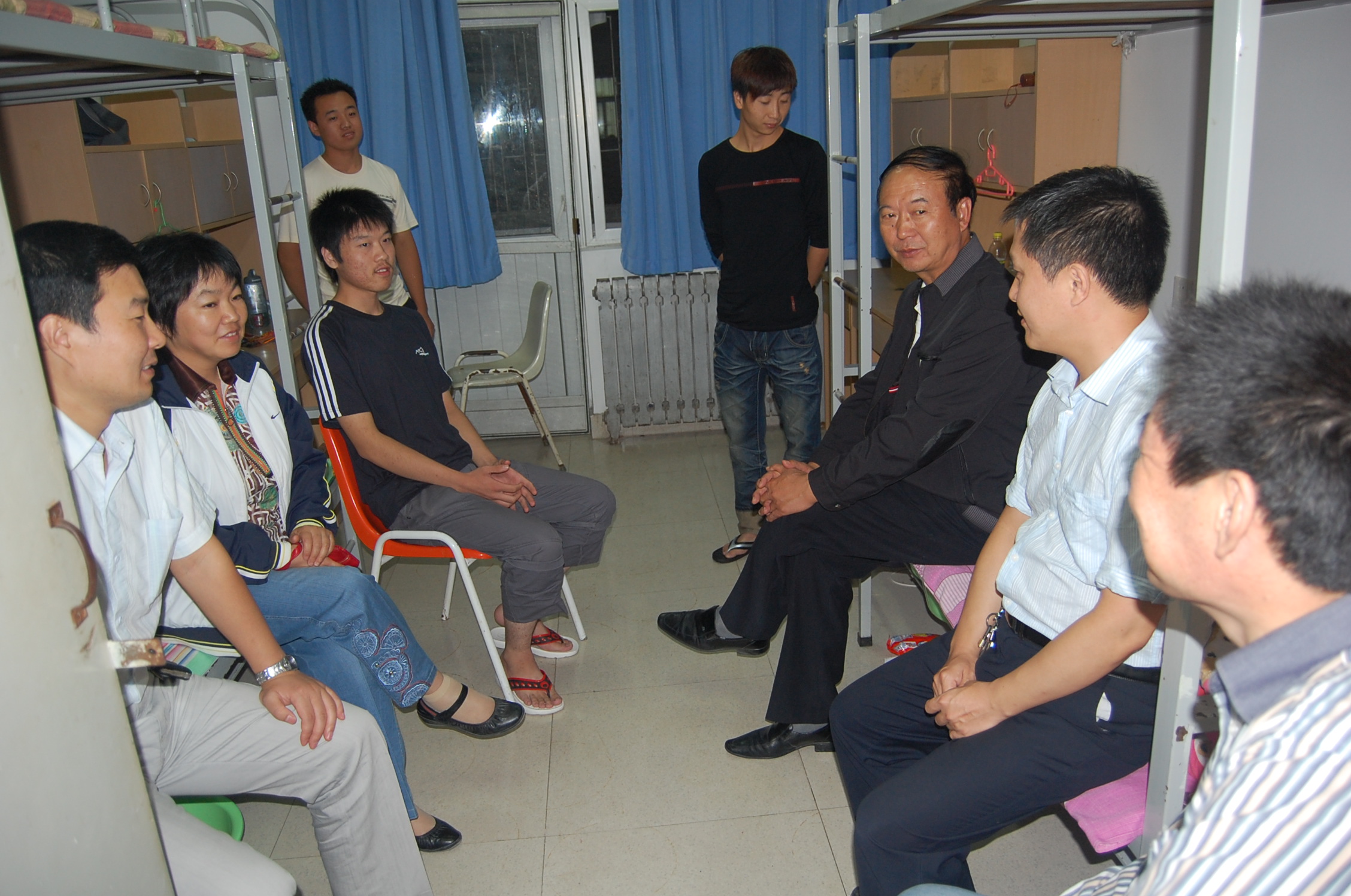 党委书记樊世明,院长李书琴教授,副院长张阳教授、来智勇教授,党委副书记何卫军,党政综合办公室主任刘桂玲,学工秘书谷申杰和全体辅导员到新生宿舍亲切看望了2010级新生。