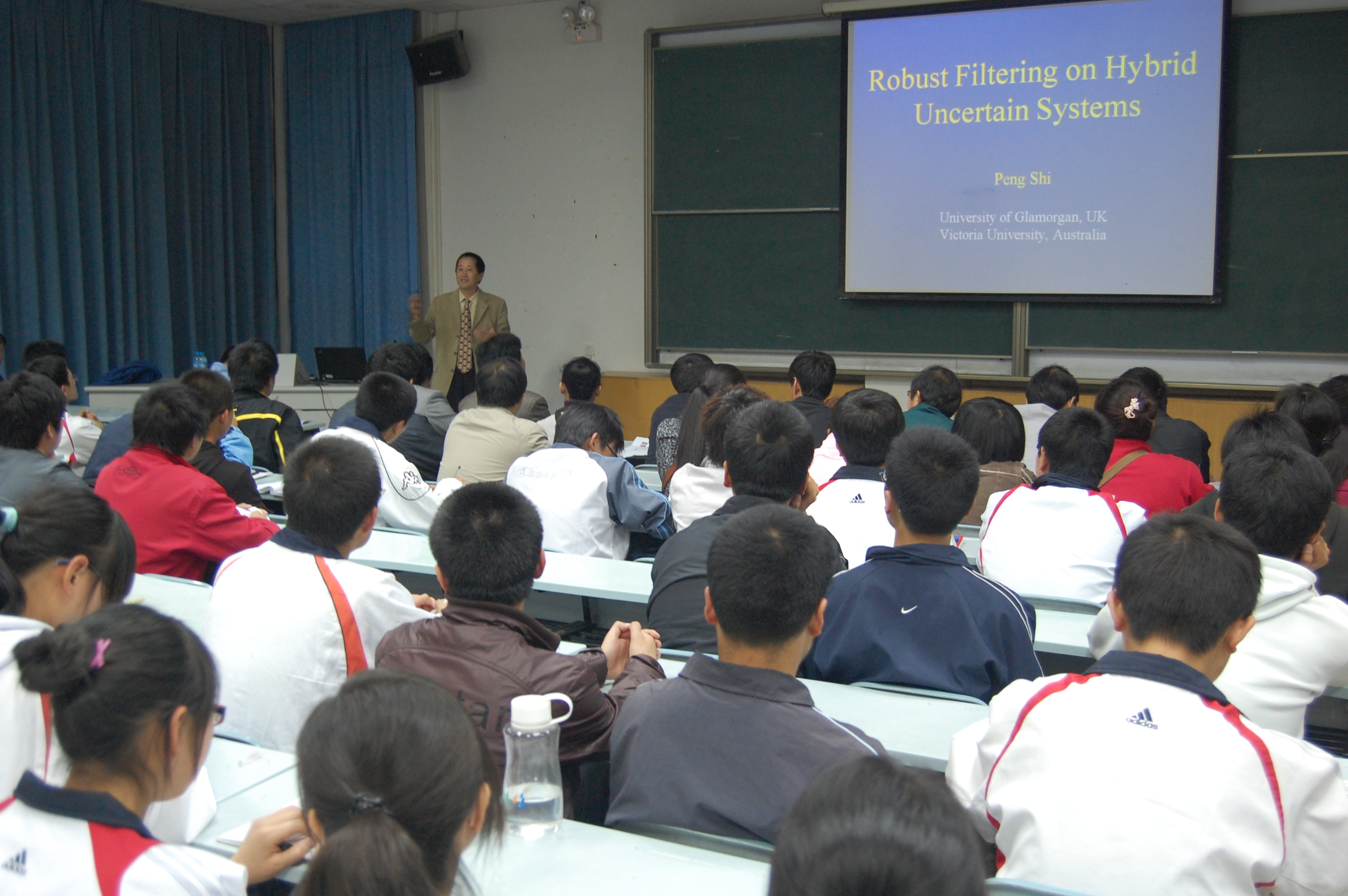 Peng Shi (石碰),男,1958年10月出生,现任澳大利亚维多利亚大学工程科学系教授,博士生导师。1982 年毕业于中国哈尔滨工业大学数学系获得理学学士学位;1985年毕业于中国哈尔滨工程大学系统 工程专业获得工学硕士学位。1994年于澳大利亚Newcastle 大学电子工程与计算科学专业获得工学 博士学位,1998年于澳大利亚South Australia 大学数学专业获得理学博士学位。英国数学和数学应用学会的会士(Institute of Mathematics and its Applications (UK)),IEEE(美国电子和电气工程师协会)高级会员。研究领域主要包括:随机系统的稳定性、控制、估计和鲁棒性,不确定系统的鲁棒估计,混杂的非线性的动态系统的稳定和控制,故障检测及隔离,容错控制及可靠控制,信号处理,智能系统及信息处理,时滞系统,模糊系统,采样系统等。已撰写三本专著,在 Automatica, IEEE Transactions on Automatic Control, IEEE Transactions on Fuzzy Systems, IEEE Transactions on Systems, Man and Cybernetics-B, IEEE Transactions on Neural Networks, IEEE Transactions on Circuit and Systems, IEEE Transactions on Signal Processing, IEEE Transactions on Control Systems Technology, Systems and Control Letters, International Journal of Control, SIAM Journal on Control and Optimization等一级杂志和国际会议上发表400多篇学术论文,SCI他引1000多次,特别是在估计和控制、随机系统的鲁棒性分析方面的工作得到了国际同行的认可和赞赏,并且得到广泛的应用。
