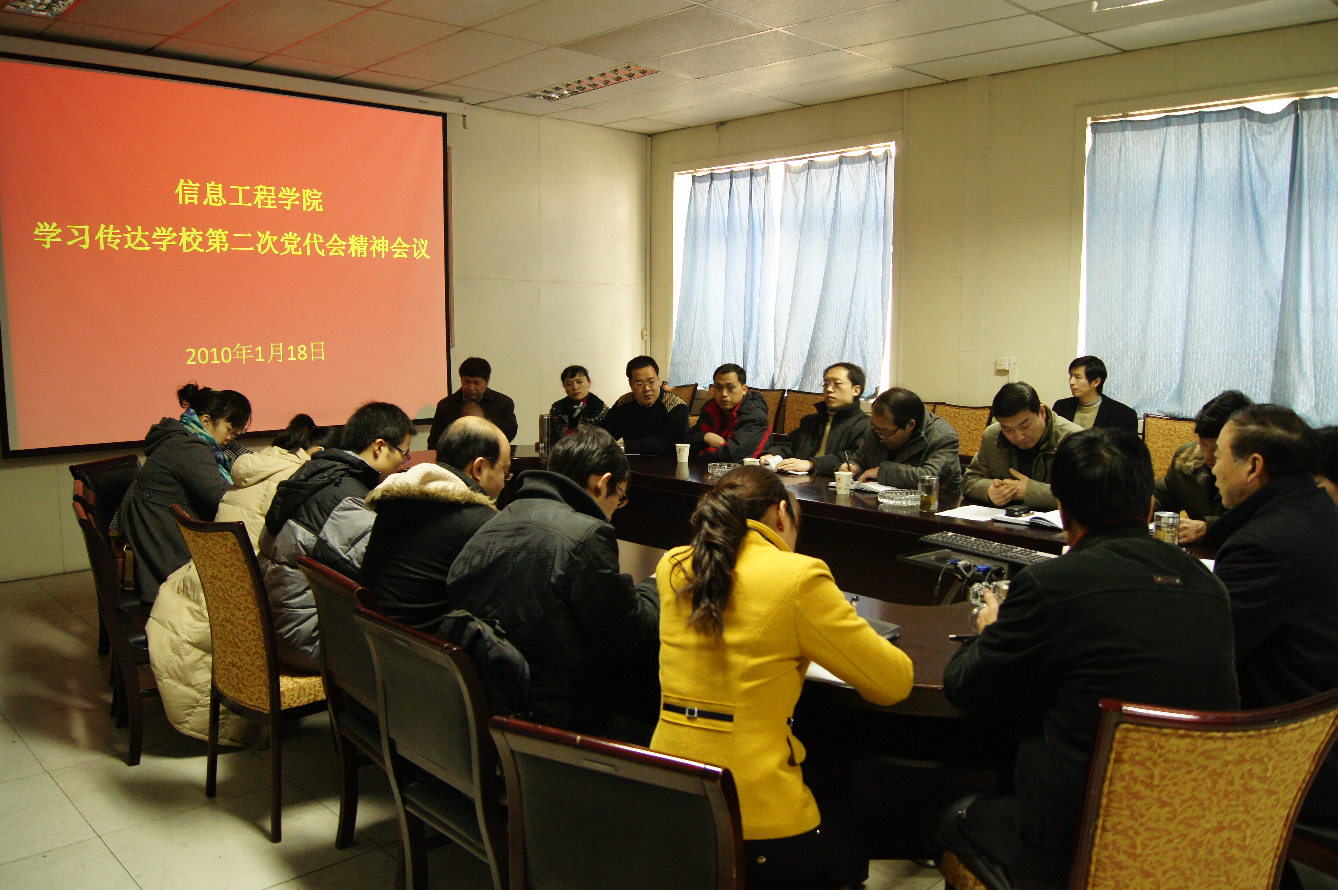 在一层会议室召开学校第二次党代会精神学习会,全体院领导、党委委员、系部主任、党支部书记和办公室工作人员参加会议,会议由成人社区
