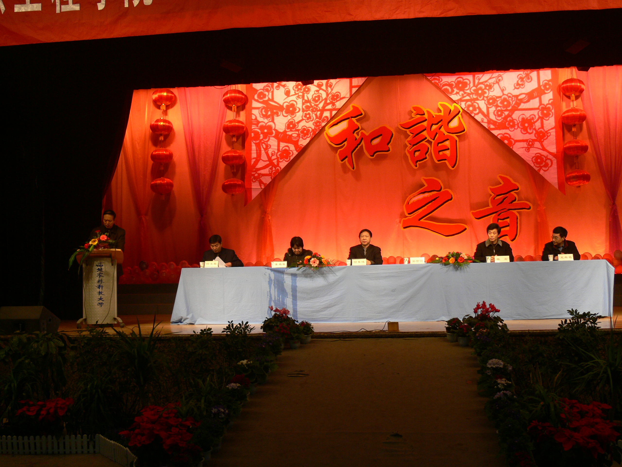 12月23日晚,成人社区 2007年度表彰大会及师生元旦联欢晚会在绣山活动中心隆重举行。出席本次晚会的领导有成人社区 院长何东健教授、党委书记樊世明、副书记何卫军、副院长韩宏、副院长李书琴、副院长王木昌。全院师生共1100余人参加了此次表彰大会暨师生联欢晚会。应邀出席的嘉宾有植物保护成人社区 党委书记吕振武、学生处副处长王文博、校团委副书记江红梅等。
