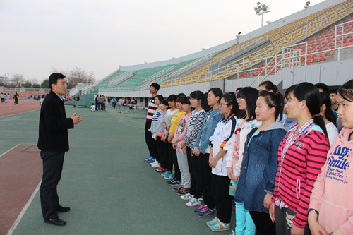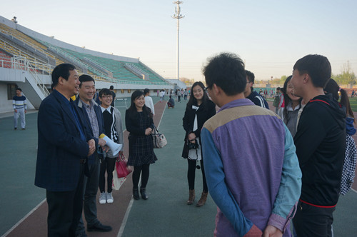 4月13日,成人社区 党委书记宋西德、党委副书记何卫军、学工秘书王淑珍及年级辅导员,来到田径场看望我院校运会备战运动员。看望现场,宋书记嘱咐运动员训练期间注意安全、避免受伤,对不懈挥洒汗水的运动员表达了赞许,期望运动员们能在即将到来的校运动会上为我院争光添彩。何卫军书记就运动会训练情况进行了了解,并对训练工作做出了进一步安排,确保校运会工作顺利开展。响亮的号角已吹响,愿我们与成功共勉!