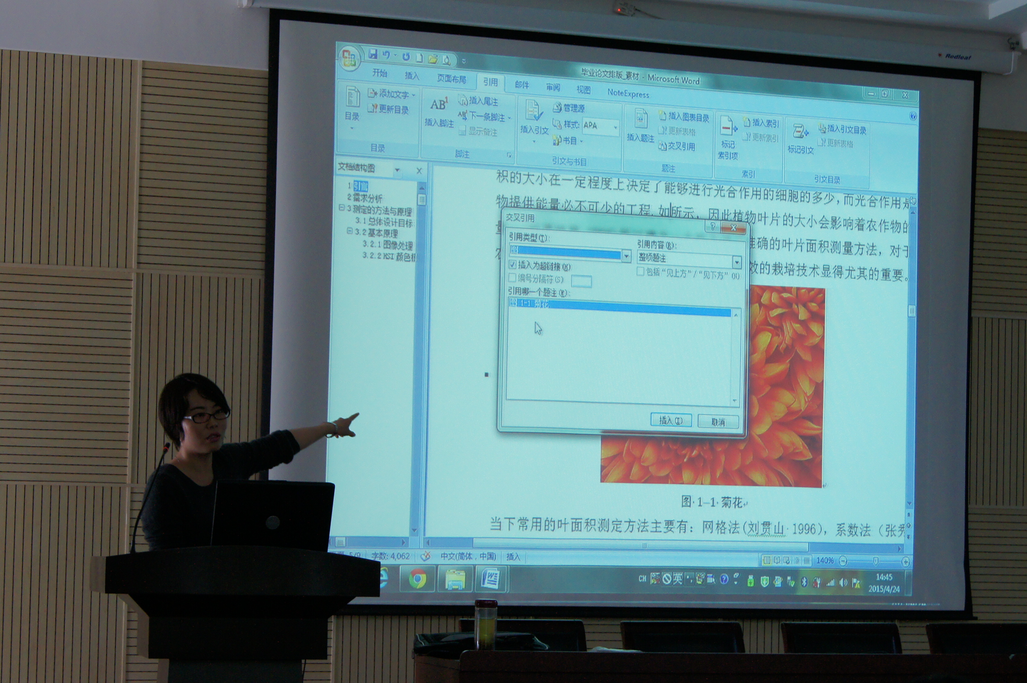 4月25日下午,由我院青年教师杨沛老师主讲的“轻松排版、完美格式—论文排版之Word技巧”的专题讲座在成人社区 副203进行。