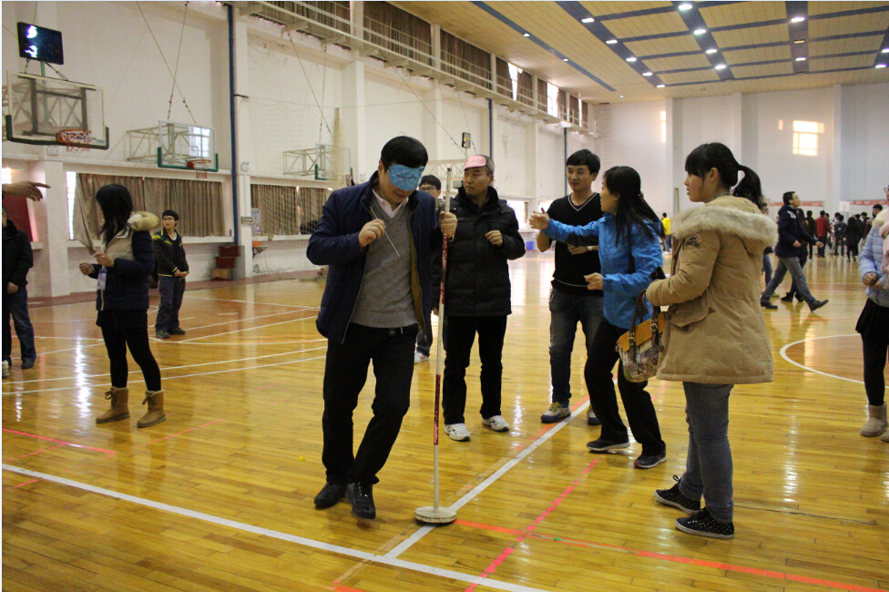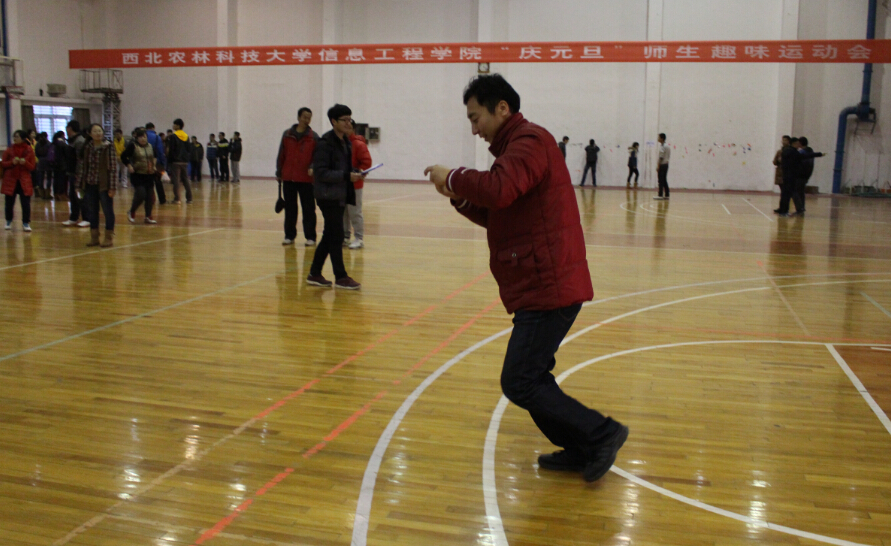 此次活动经过半年酝酿,一个月前开始筹备,聘请我院体育辅导员杜养军副教授担任技术指导兼总裁判长,进过反复讨论,实战演练,精心筛选最终拟定具有信息特色的比赛方案,将全体教工打破系部界限,按照年龄性别排序随机分为六组,每组12人,分别由经验丰富的教工担任队长,通过随机组合与另外六组每组30名学生组成A、B、C、D、E、F师生联合队,比赛采用两队对抗进行,获胜队给予奖励。比赛共设八个项目,规定每个比赛项目都有2--3名教工参赛,极大地调动了师生的积极性,同时在各项比赛的环节中让师生感受到无穷的乐趣,增强了团队合作的精神。趣味运动项目丰富多彩,除了传统的踢毽子、齐心跳大绳、蒙眼扎气球、金玉满堂等比赛,还创新性的添加了无轨电车、边跑边答、担架运输、贪吃蛇等新项目。运动会持续了两个多小时,现场气氛火爆,参赛队员情绪高涨,热情似火,呐喊声、加油声此起彼伏,响彻全场。特别是在金玉满堂的比赛中,院领导带领参赛,相互鼓励,完美配合,共同奋斗,为所有参赛队员做好表率,让全院师生生体会到了共同参与的乐趣,师生之间充满了信任与关怀。