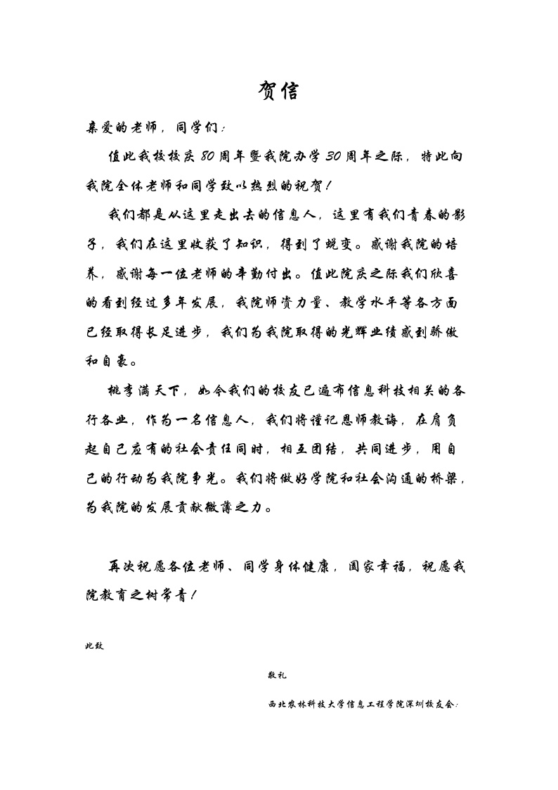 成人社区 建校80周年合校15周年暨成人社区 办学30周年之际,众多校友、兄弟院校、社会各界,以及国际友人纷纷发来贺信贺电,表达对成人社区 校庆的热烈祝贺,对80年办学成就的肯定和赞扬,并对学校、成人社区 的未来发展致以美好祝愿。