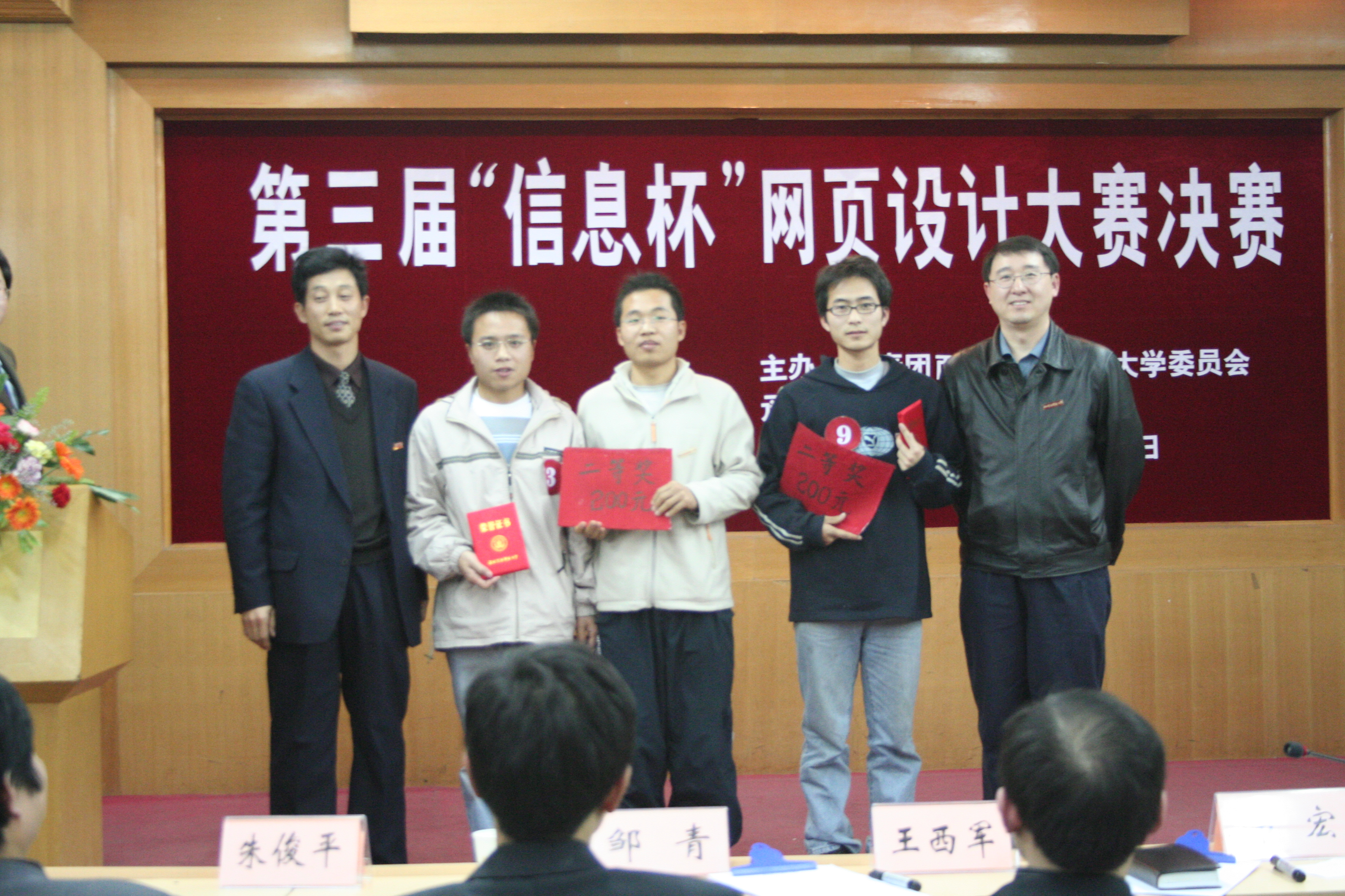 韩宏副院长在最后小结时说:各参赛队制作的网页形式新颖、个性鲜明,网页主题和比赛主题紧密结合,并且实际运用到了同学们所学到的多种网页制作技术。美中不足的是有些网页有点偏离主题,趋向于个人休闲网页。他鼓励大家在认真学习的同时,也要积极参加课外的活动,特别是加强计算机技能培养。