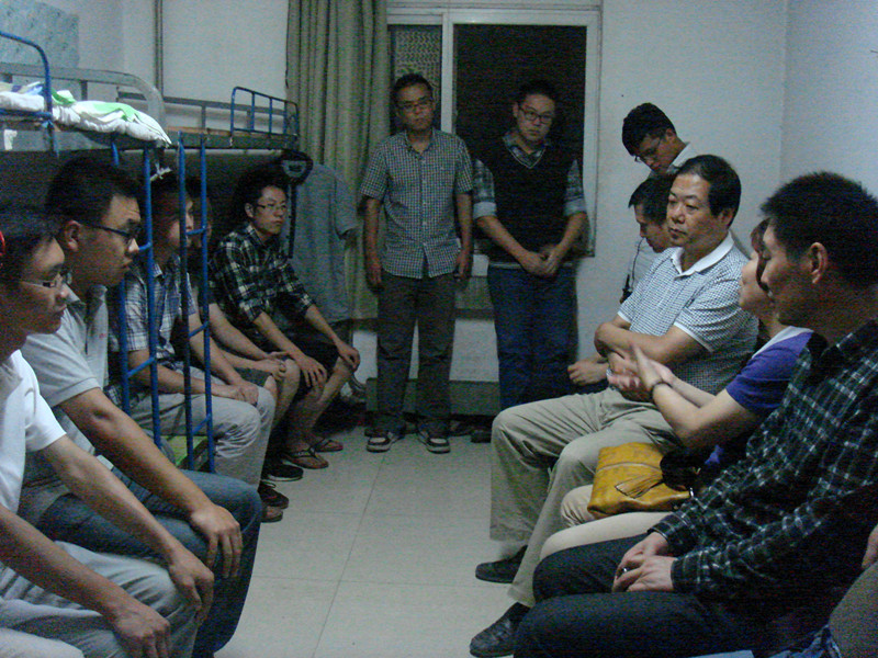 9月5日,为期两天的2013级研究生接待工作顺利结束,晚上19:30,成人社区 院长李书琴教授、党委书记宋西德、副院长来智勇教授、副院长张阳教授、党委副书记何卫军等在成人社区 研究生工作人员的陪同下,到北校区8号、9号研究生公寓,亲切看望2013级入住新生,为即将开始人生新征途的研究生送上成人社区 的问候与祝福。