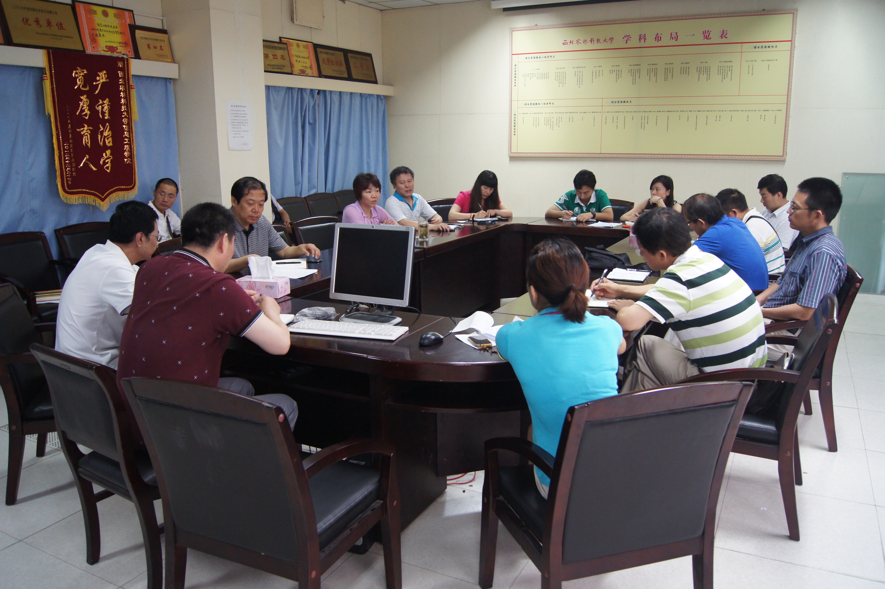 在院一层会议室召开暑期安全工作安排部署专题会议。全体院领导、各系、部、室主任和办公室秘书参加会议。