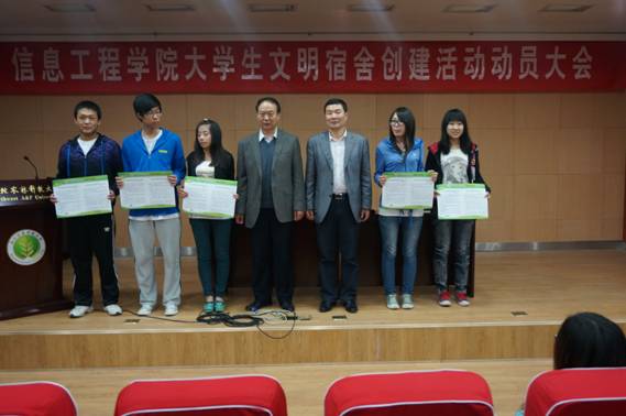 院领导为各年级宿舍长代表颁发了《宿舍公约和舍长职责通告》 ,希望同学们严格要求自己,提高个人修养,主动地参与大学生文明宿舍建设活动,努力营造良好的宿舍学风。