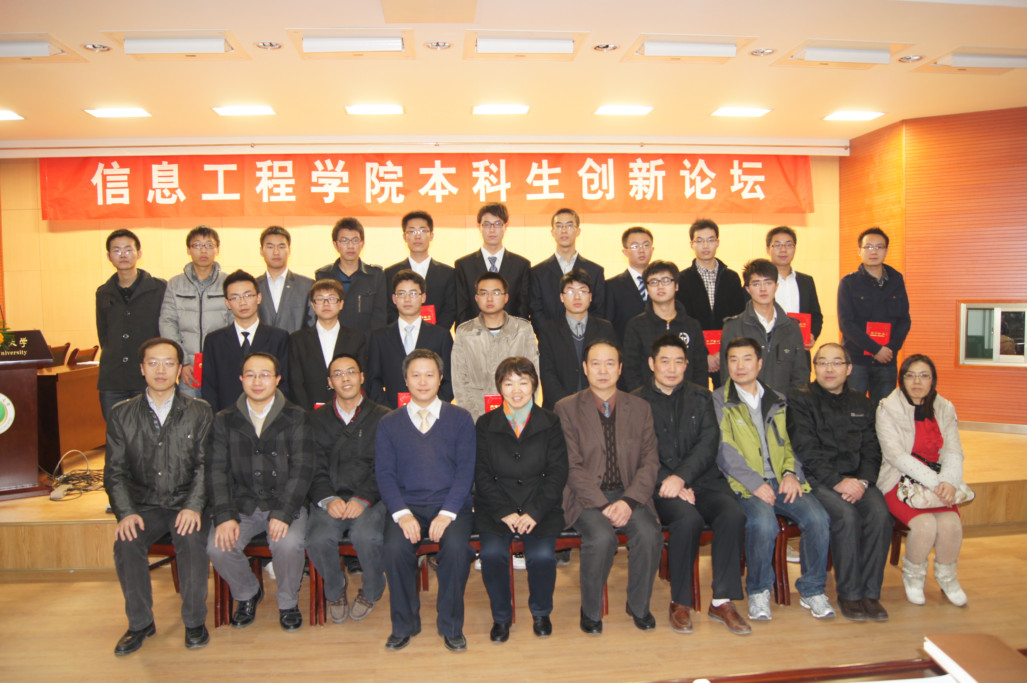 筛选出的19组作品依次进行了展示,选手主要讲述了作品设计思路、过程、核心技术以及应用前景等。选手的精彩讲解和高质量的作品赢得了阵阵掌声,每组作品演示结束后,评委老师和参会同学分别提问,就相关问题进行了热烈的讨论。经过认真评选,袁林等同学的作品《低成本高精度三维激光扫描系统》和宋永齐等同学的作品《基于增强现实和手势识别的智能车控制》荣获一等奖,马腾郡等同学的作品《循迹智能小车的研究与设计》、严正龙等同学的作品《多点触控系统的研究与开发》、夏茂庚等同学的作品《稀疏表示应用于牛脸识别》和袁林等同学的作品《双目视觉三维测量系统》荣获二等奖,李小康等同学的作品《电脑鼠走迷宫》、贾伟洋等同学的作品《净温室效应数据采集与分析软件设计研究》、陈晨等同学的作品《手机安全卫士》、尹强等同学的作品《基于地面飞行器的图像拼接技术》、刘若愚等同学的作品《基于蓝牙无线通信的智能家居控制系统》和马华宇等同学的作品《多模式控制移动机器人系统》荣获三等奖,其余参赛作品荣获优秀奖。张志毅副教授和徐杨副教授被评为优秀指导教师。