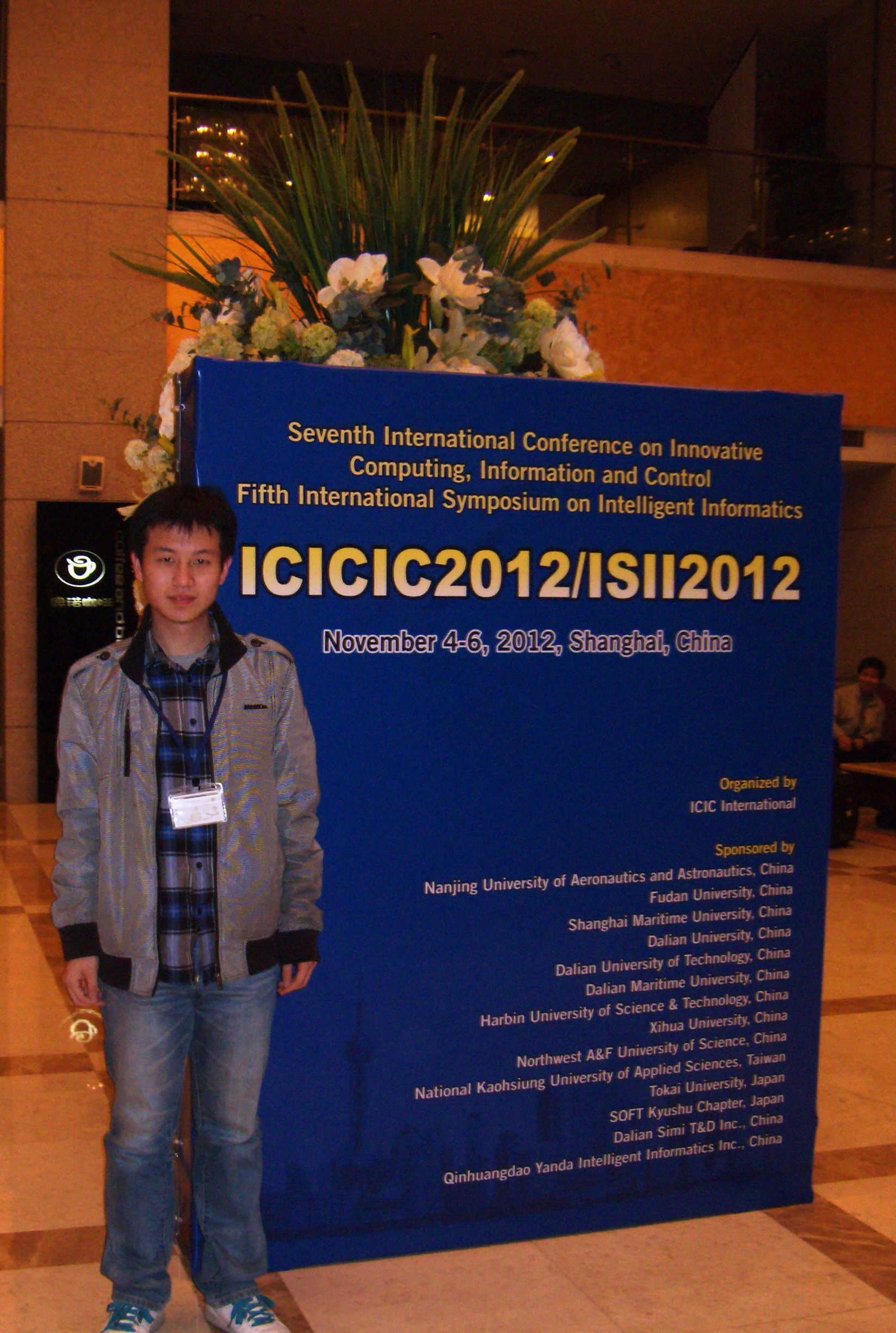 成人社区 2009级计算机科学专业本科生代永里于2012年11月4日-6日赴上海复旦大学参加了第7届创新计算信息与控制国际会议并与来自各地的专家进行了交流。