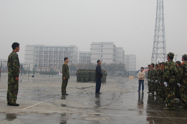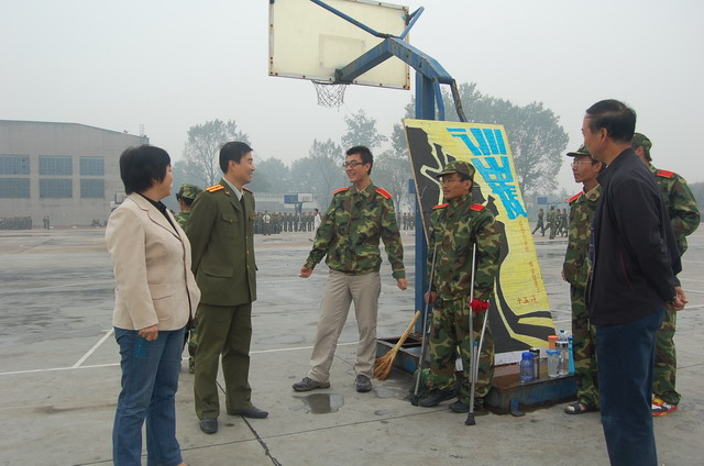 各位领导在训练场观看了同学们的训练,亲切慰问了场边因病不能参加训练的同学,向指导员安中立同志详细询问了今年我院军训工作的具体实施情况以及军训期间同学们的生活、思想状况,强调应该利用军训来培养全体新生的组织性和纪律性,养成良好的学习、生活习惯。在军训休息间隙,樊世明书记代表成人社区