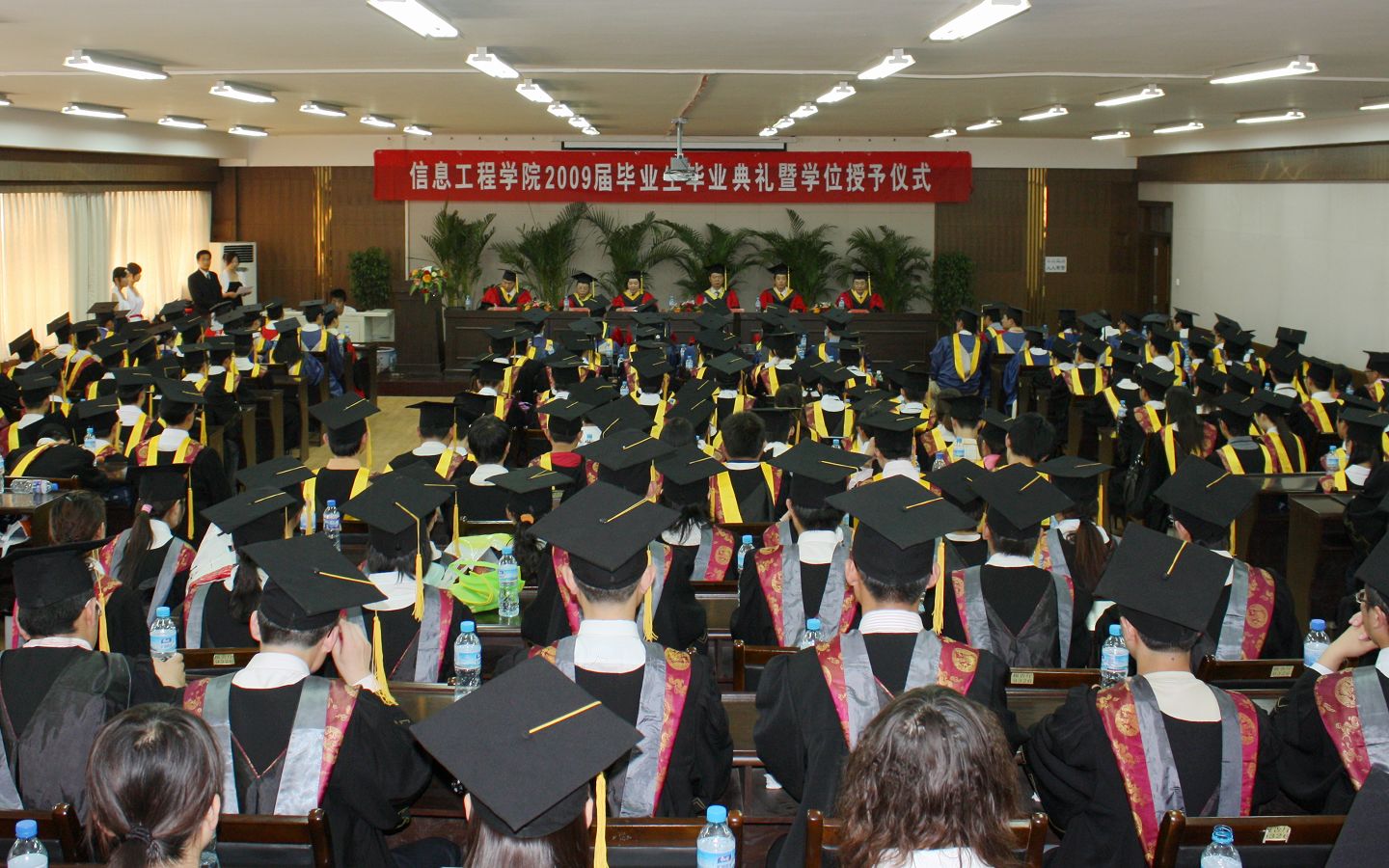 6月26日下午,我院2009届毕业生毕业典礼暨学位授予仪式在机电成人社区 三层报告厅举行。全体院领导、部分毕业生指导教师代表、部分学生家长代表、全体2009届毕业生和部分低年级学生代表参加了毕业典礼暨学位授予仪式。