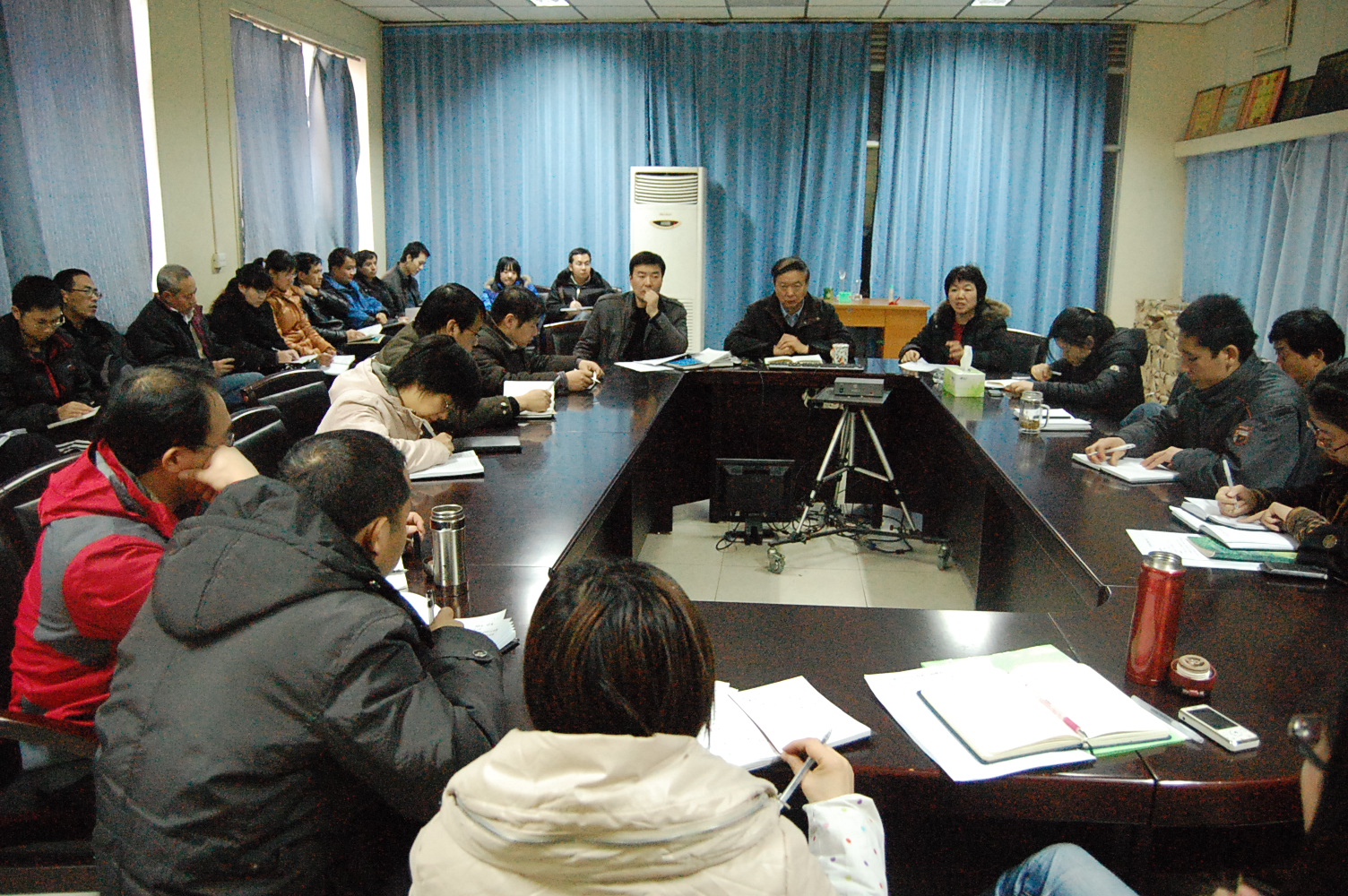 2011年12月15日,我院在院一层会议室举行全体班主任会议,总结2011年成人社区 学生工作,安排部署2012年学生工作。与会人员有成人社区 党委书记樊世明、院长李书琴、党委副书记何卫军等领导及全体班主任、辅导员老师。会议由樊世明同志主持召开。