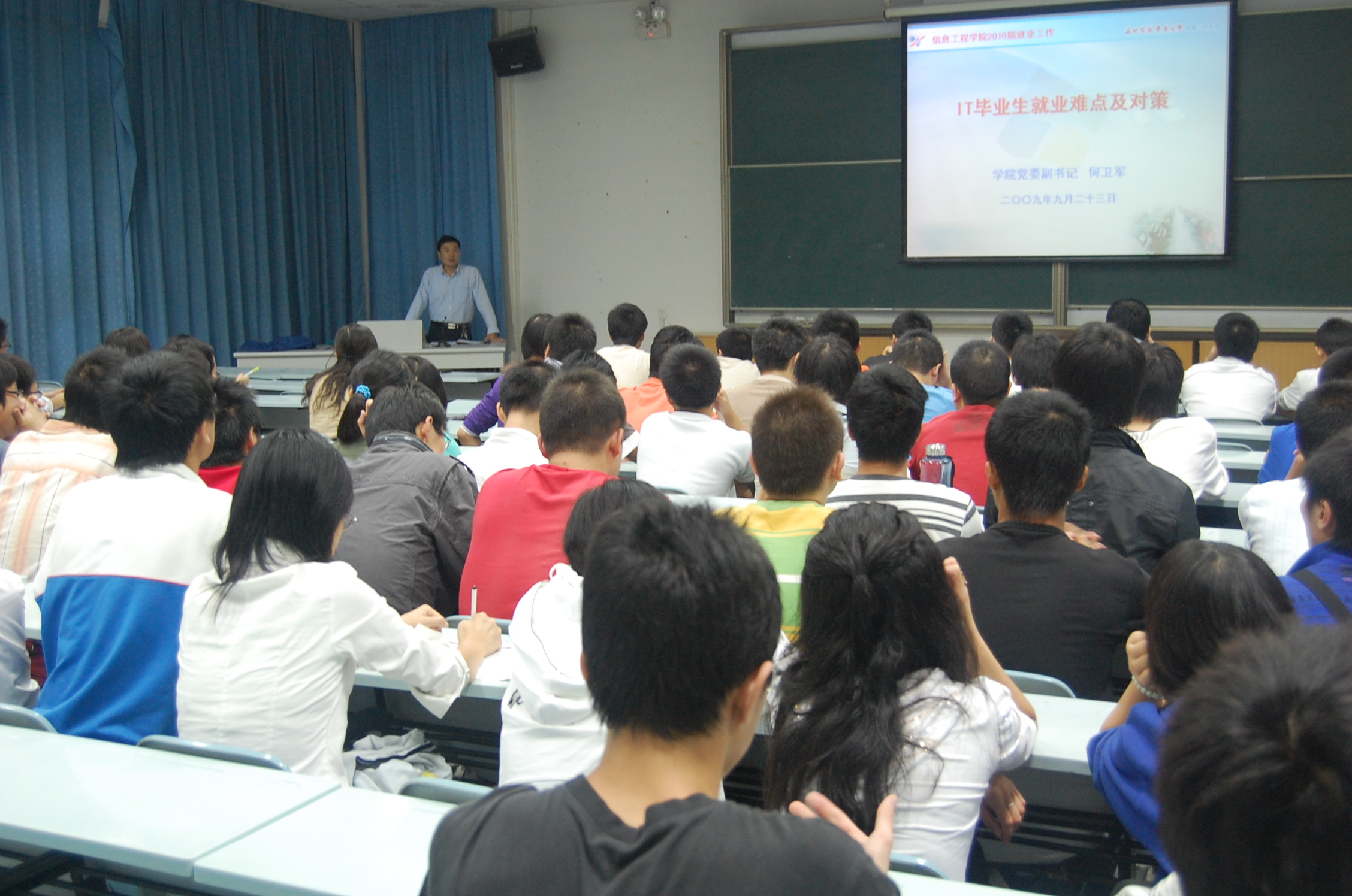 为了帮助毕业生更好地把握就业形势、规划职业生涯、做好就业准备, 9月24日晚,成人社区 党委副书记何卫军在成人社区 多媒体教室为2010届毕业生作了就业指导报告会。