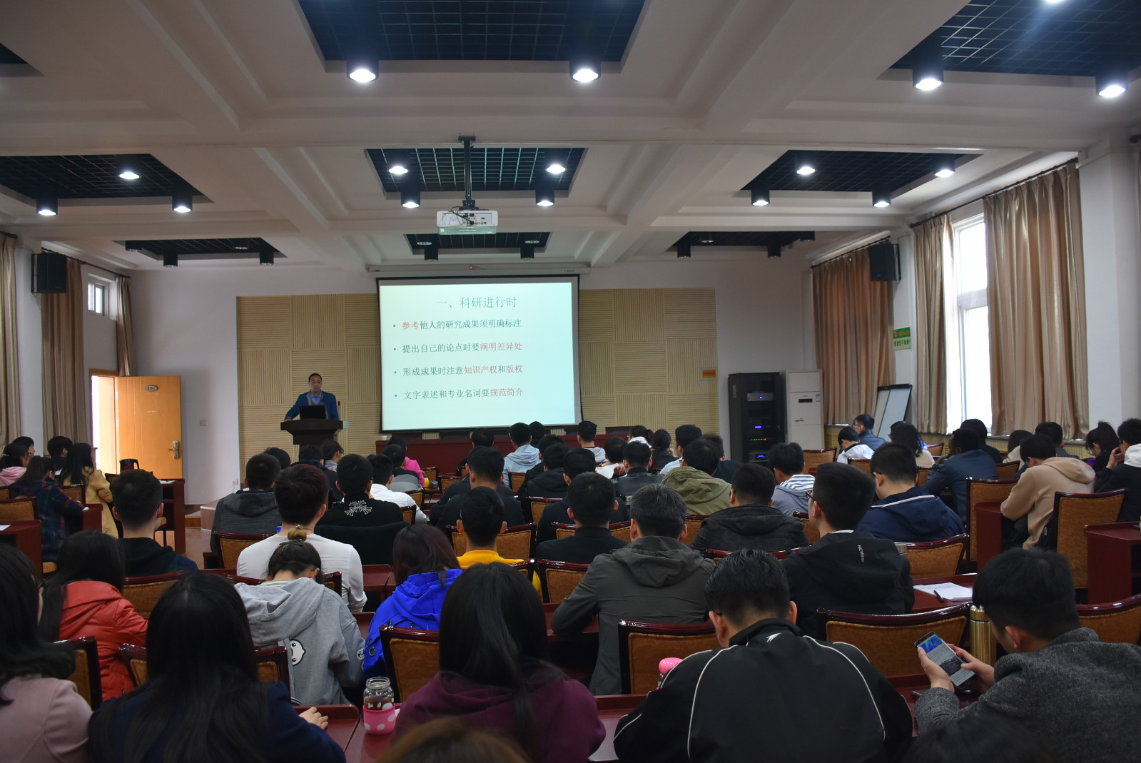 张志毅教授从影视明星深陷学术造假丑闻等学生关注的事件谈起,列举了科学界大量科研失范案例,引发学生警醒。随后,张志毅从科研成果发表与保护的基本知识、抄袭与引用的区别、如何树立科研诚信意识3个方面详细介绍了科研诚信与学术规范的相关内容,教育学生“抄袭是一种坏习惯,更是自我的丢失;引用是一种好习惯,仅在必要时做”。他从道德范畴和法律范畴分别分析了科研诚信的重要性和必要性,并提出了加强自我认知和自我约束、多读好书、完善知识结构、养成良好科学素养等可行建议。