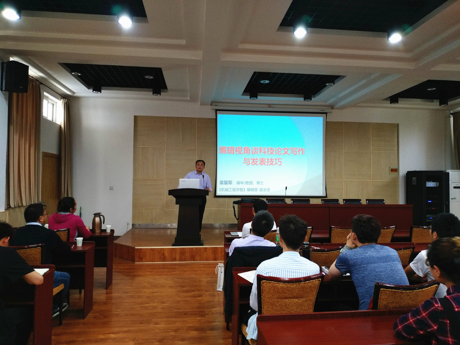 为帮助学生了解科技论文高质量写作与投稿技巧,4月19日下午,我院特邀《机械工程学报》编辑部副主任、国务院国家科技专家、北京邮电大学兼职教授梁福军教授在成人社区 副203报告厅开展题为“编辑视角谈科技论文写作与发表技巧”的学术报告会,与我院学生共同分享和探讨高质量科技论文写作的注意事项。本次报告会由我院副院长胡少军主持,2017级、2018级研究生共同参与。
