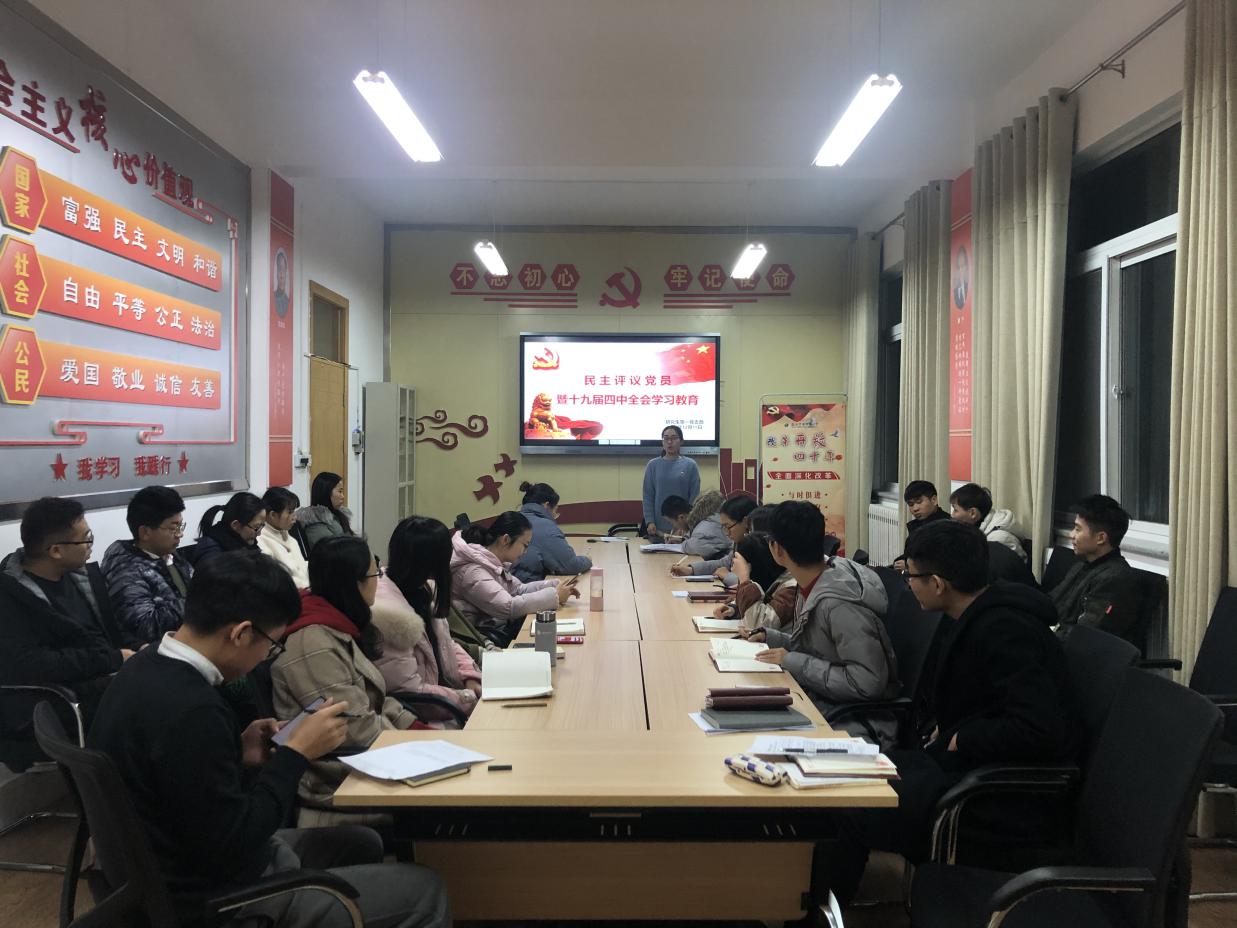 401召开了“民主评议党员暨十九届四中全会主题教育学习”组织生活会。支部所有党员同志一起学习了十九届四中全会内容,并进行了民主评议党员自评、互评环节,最终评选出七名优秀党员。