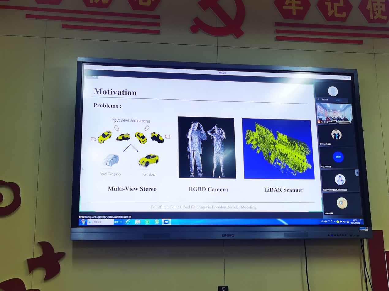 11月26日下午,澳洲迪肯大学助理教授鲁学权博士以“可视数据计算研究” 为题作线上学术报告,围绕三维几何数据和二维图像数据处理问题,介绍课题组相关工作,成人社区 相关师生参会。