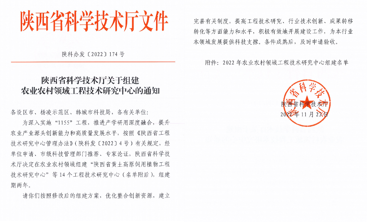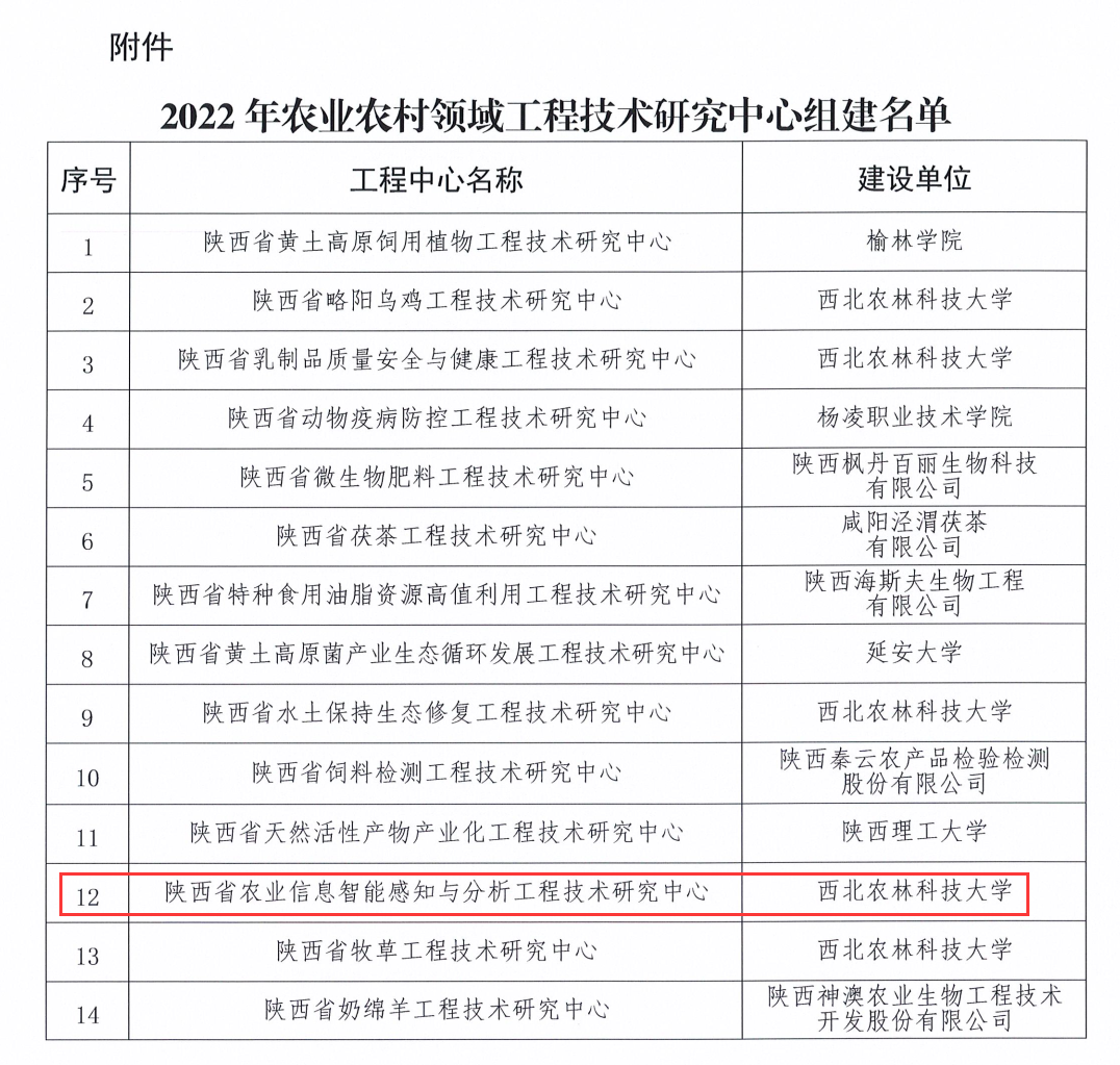 11月30日,陕西省科技厅公布了2022年农业农村领域工程技术研究中心组建名单,我院申报的“陕西省农业信息智能感知与分析工程技术研究中心”位列其中,这是我院获批的首个工程技术研究中心,标志着成人社区 开启了更有依托、更有组织、更有导向科研的新篇章。