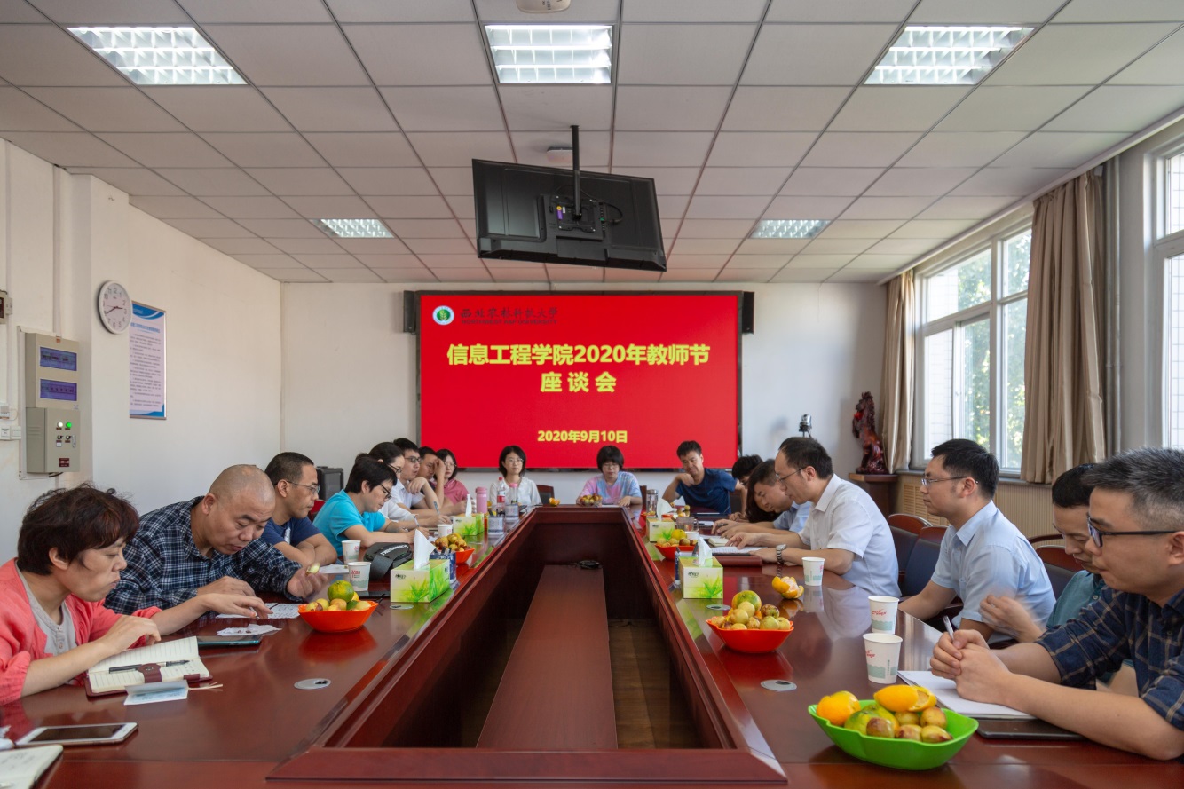 座谈交流,共话立德树人。成人社区 于9月10日下午召开了教师节座谈会,院领导班子、全体在校教授、系(部、室)主任、近三年新入职教师30余人参加了座谈。成人社区 党委书记党青主持座谈会并讲话,院长张宏鸣发表节日致辞。与会教师一起学习了习近平总书记向全国广大教师和教育工作者节日问候。特别邀请陕西省“特支计划”教学名师类入选者李书琴教授、“我心目中的好导师”获得者张志毅教授、“我最喜爱的老师”获得者田彩丽老师结合自身成长经历分享了站好讲台、做好科研、践行立德树人使命的心得并对新教师练好基本功、站好讲台、个人发展等提出了中肯建议。座谈会气氛热烈,凝聚了人心,激发了青年教师向优秀看齐,牢记为党育人、为国育才的使命,忠诚党和人民的教育事业争做“四有”好老师的决心。