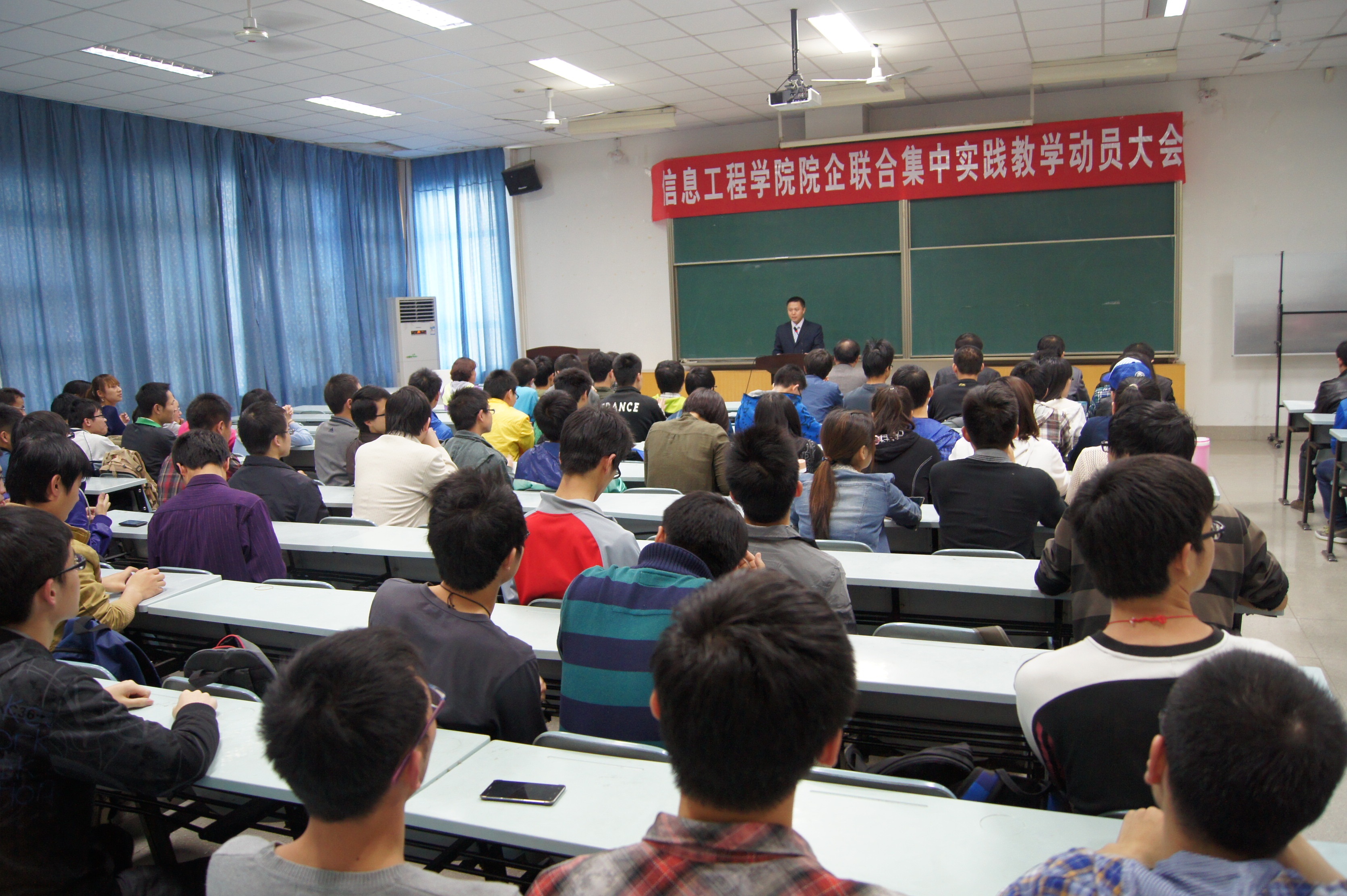 于2013年4月24日,分两批召开了院企联合实训动员会,动员会由副院长张阳主持,院长李书琴、党委书记樊世明、副书记何卫军、相关系主任及教师、办公室人员参加了会议。动员会上,成人社区