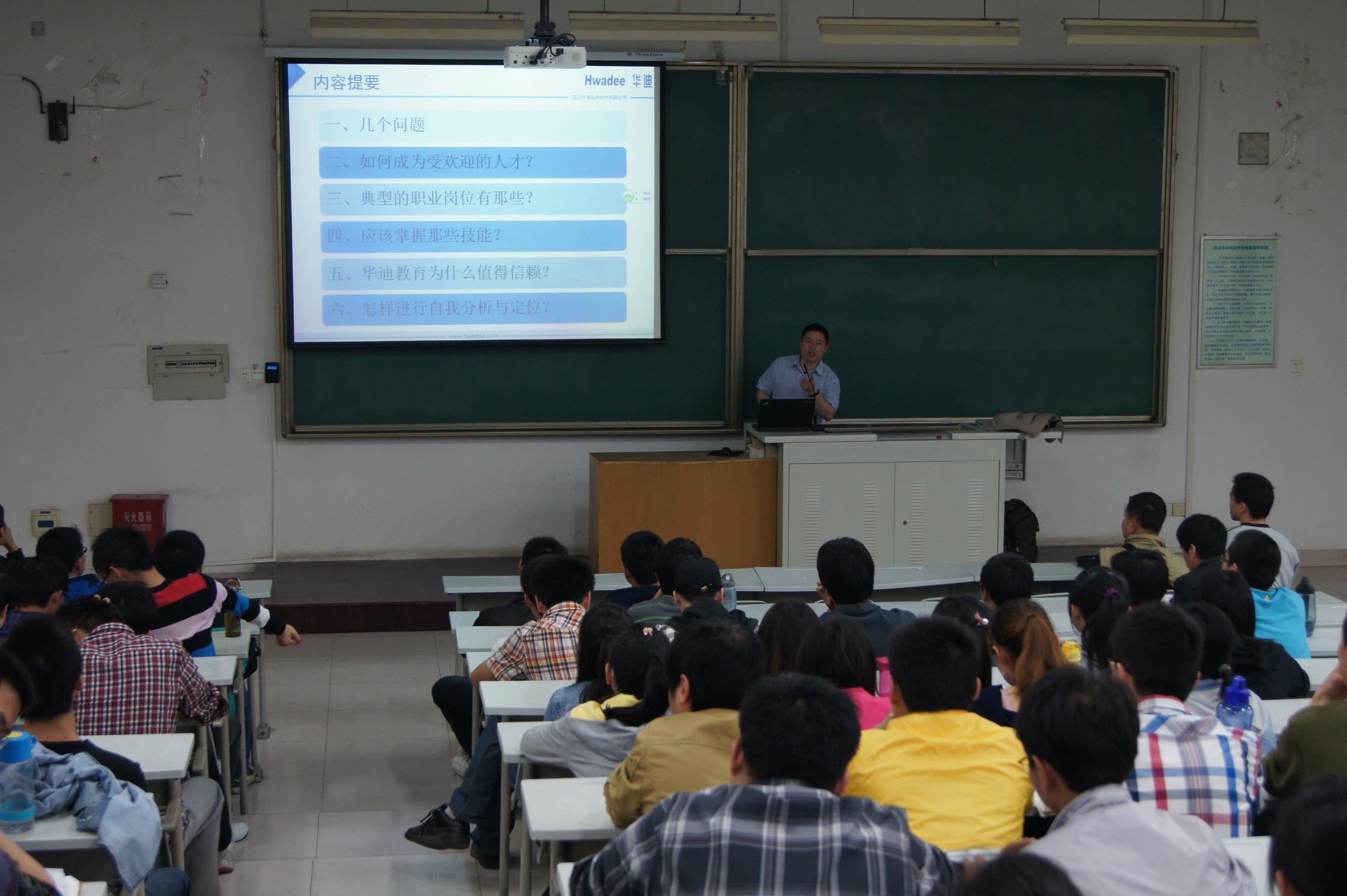 企业于2013年4月25日、26日进行了宣讲。宣讲中,企业负责人分别对实训目标、运行方式、过程管理、考核方式、项目及项目来源、企业资质、成人社区进行了详细讲解,使学生对不同企业、不同方向的实训有了更清晰的认识。