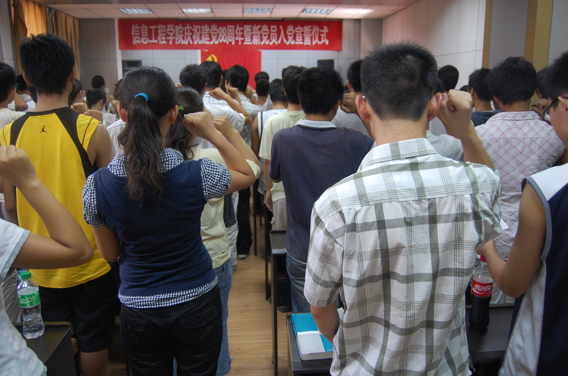大会在庄严的国际歌中拉开了序幕。团工委书记谷申杰老师带领大家共同宣读入党誓词,所有党员热情高涨,气势激昂。预备党员徐方华同学和入党积极分子王照浩同学分别作为代表发言,表达出了所有预备党员及入党积极分子迫切加入中国共产党的心声。最后,院党委副书记何卫军致词。他说,入党宣誓意味着一种新的人生,一种新的政治生命,一种新的生存状态,希望各位新党员要牢记誓词、践行誓词,保持共产党员先进性,做一个名副其实的共产党员;要认真遵守成人社区 的各项要求,认真切实履行党员义务,在同学中起到模范带头作用。