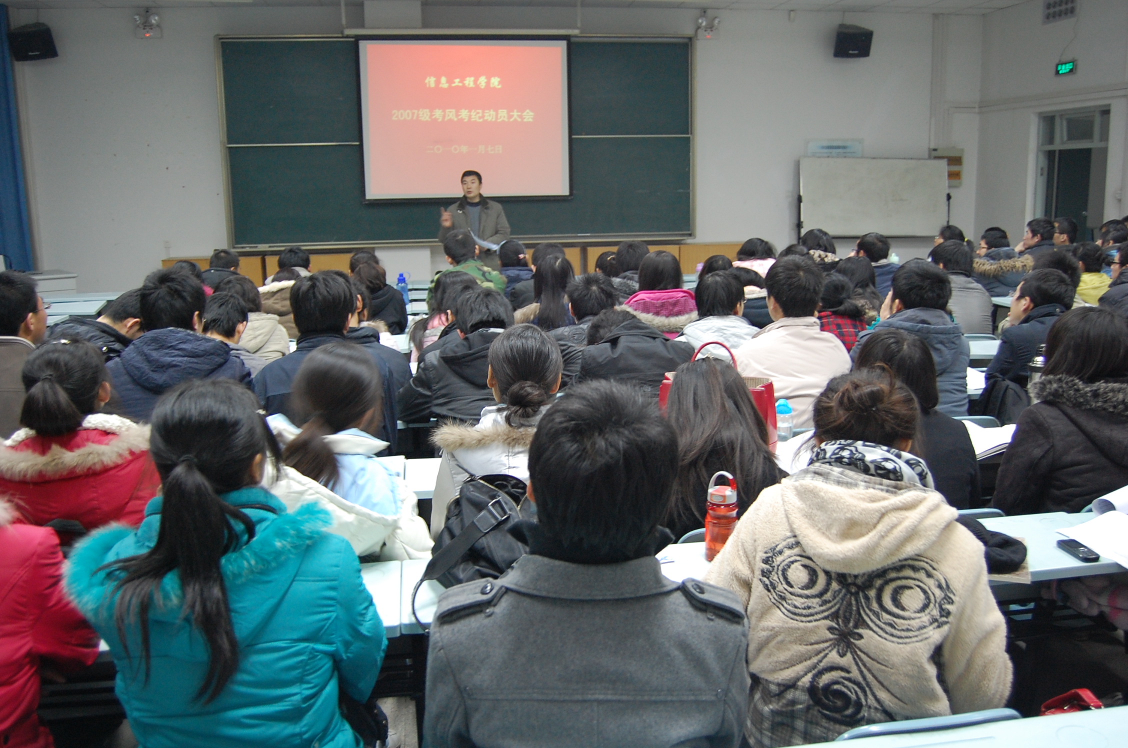 为落实学校加强考风考纪工作会议精神,进一步强化我院学生诚信意识,严肃学生考试纪律,杜绝学生考试违纪、作弊现象,根据成人社区 加强考风考纪工作会议安排,1月7日下午和晚上,成人社区 分别对2007级和2009级学生分年级召开了加强考风考纪动员大会。成人社区 党委书记樊世明和党委副书记何卫军分别就诚信考试做了动员讲话和具体安排。全体辅导员和部分班主任参加了动员大会。