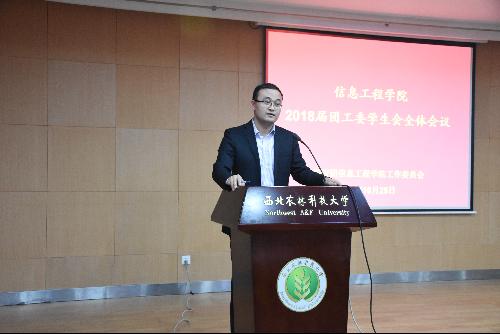 2017年10月25日下午,我院2018届团工委学生会全体会议在北绣活动中心北报告厅正式召开。成人社区 党委副书记翟立,学工办秘书王淑珍,团工委书记倪玲,16级辅导员李超琼,17级辅导员闫一凡及学生会全体成员参加了本次会议。